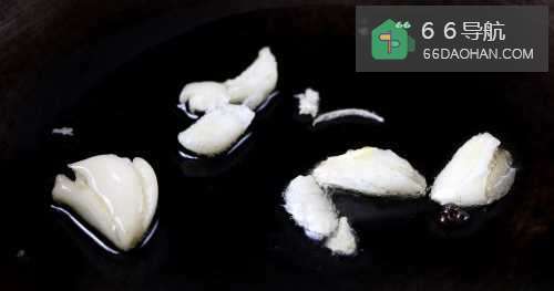 5锅内放适量的色拉油,放入大蒜炒出香味;