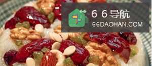5碗内壁涂上一层猪油,依次摆放红枣、核桃仁、蔓越莓,腰果、青梅干(切丁)和瓜子仁,放入150g调好味的甜味糯米饭没过装饰部分。