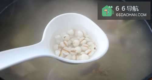 4炖至汤开始变白时,倒入薏仁米继续炖,