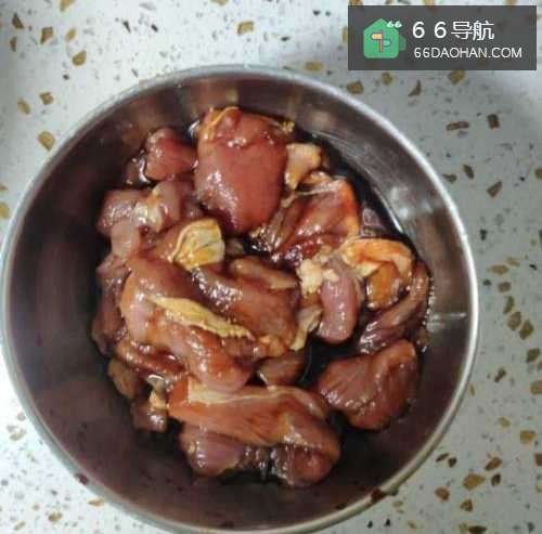 2将瘦肉切大一点的片,用生姜、生抽和老抽将其腌制两到三个小时。