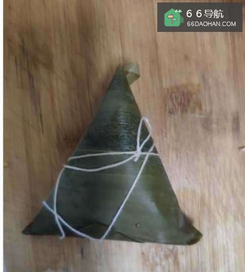 4将粽叶封闭起来,用棉线将其缠成一个三角形的形状。