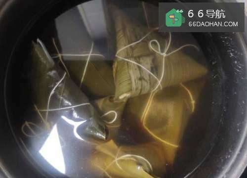 6将包好的粽子放入电饭锅里或者是锅里都可以,一定要加水将其淹没,煮熟即可。