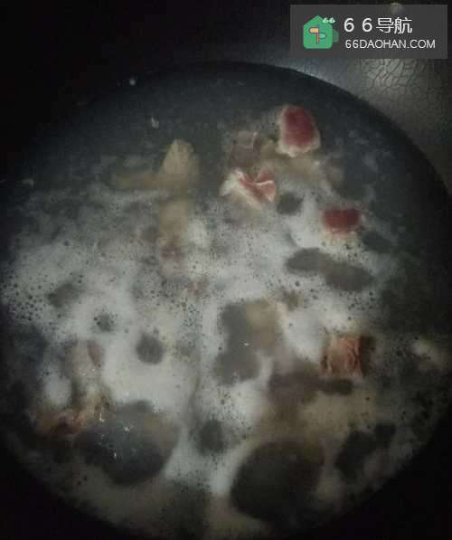 2将猪尾骨放到锅里,加水煮开、焯一下,可以煮出脏物,消毒一下;