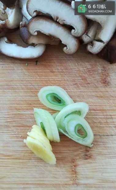 5起锅开火,热锅凉油,放入5粒花椒爆香,然后下入葱姜,再下入油菜和香菇翻炒均匀。