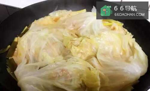 5炖煮过后,慢慢把覆盖在上面的包心菜撕开即可