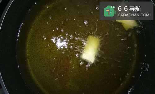 3如果锅里的油温足够时,将春卷下入锅里,春卷的附近的油会跟浪花一样,如下图;