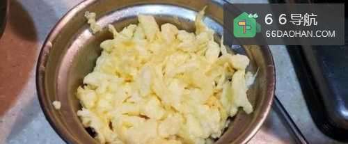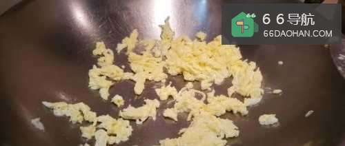 22、起油锅,油稍微多些,油热放入蛋液,并快速搅拌,使蛋液变小碎块。