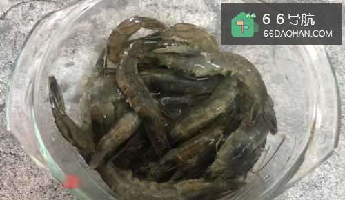 首先,我们用剪刀剪去虾脚和虾须,挑出虾线,洗净备用;