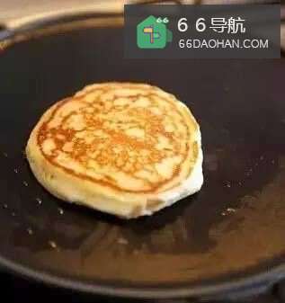 在面糊表面冒泡时即可略掀起边角查看是否上色,随即使用平铲翻面,翻面后不要立即移动,让松饼继续受热直到中心熟透并完全膨起