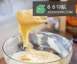 3当提起搅拌铲后可以滑出丝带状面糊时,将面糊覆盖保鲜膜放入冰箱冷藏至少2小时