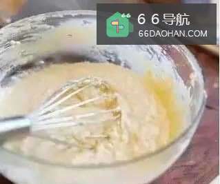 5将蛋白拌入面糊中,注意搅拌方法,将面糊从底部翻起后盖向另一侧,数次即可搅拌均匀