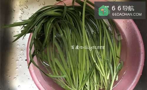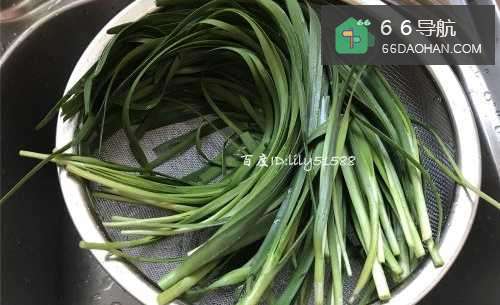 2把韭菜洗干净后,捞出来放到过滤网沥干水分,再切成丁备用。