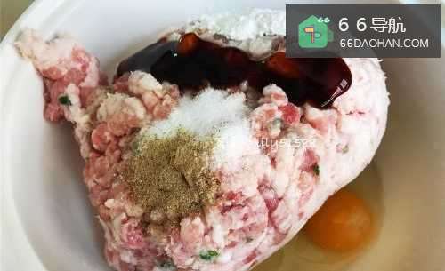 5把肉倒入大碗里,放入1个鸡蛋、1勺蚝油、1勺生粉、少许盐和胡椒粉拌匀。