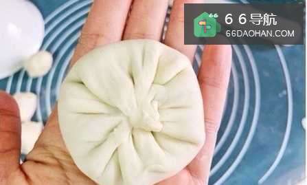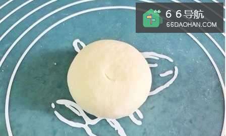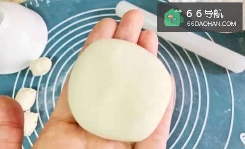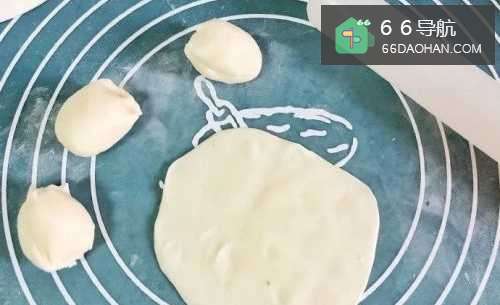 5分成4个大小相等的面团,并擀成中间厚外侧薄的面皮