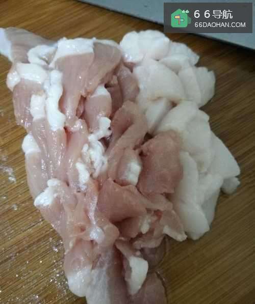 2准备好肉片,切成片状,有点肥肉比较好吃。