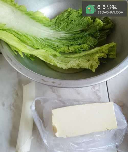 将白菜和豆腐用清水清洗干净,再准备葱。
