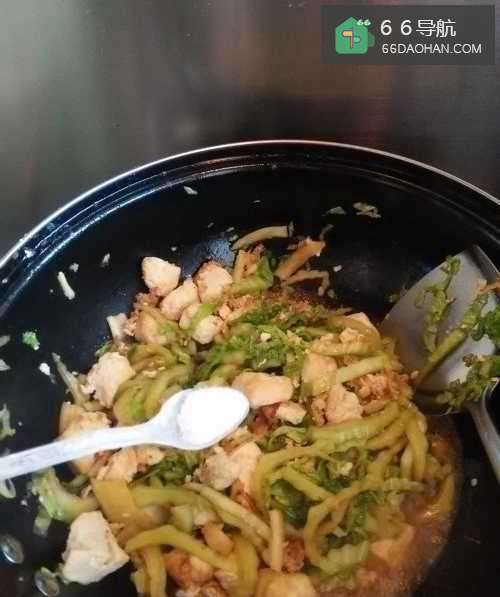 9在锅中加入适量的盐,使白菜和豆腐入味。
