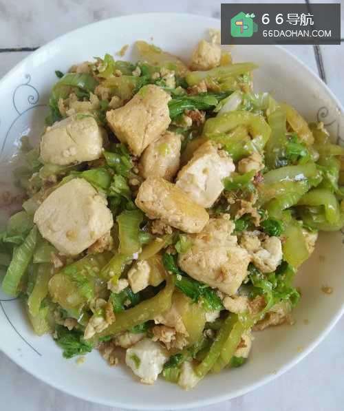 10等白菜炒熟,豆腐入味后,就可以出锅了,这道菜,颜色好看,味道清香,十分好吃。