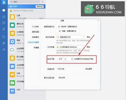 4在”文档/文件管理“界面,选择【自动下载】,取消勾选【小于M的聊天文件将自动下载】即可。