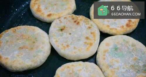 7锅中放油,油六成热放入包好的生胚,稍按扁,小火烙至两面金黄,面饼中间略鼓起出锅。