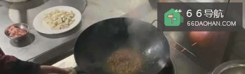 四.先放入肉沫爆炒,再掉入豆腐和少许的水。