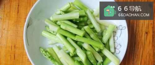 芦笋洗净切段,如果根部有点老,就把皮去掉。
