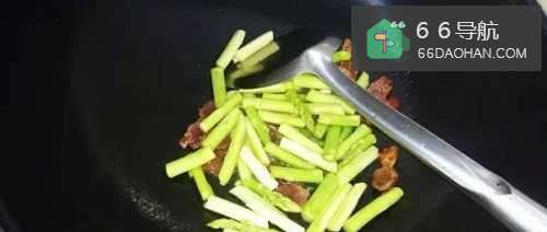 4倒入切好的芦笋段,一同翻炒。