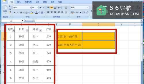 7按回车键后,计算求和出30日张一和张虎的产量。