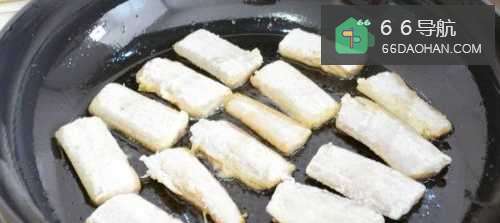 3锅内放少许油烧热,将腌制好的带鱼两面沾上淀粉后平铺在锅内煎至两面金黄即可。