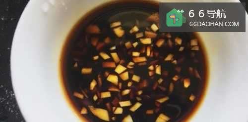 5大蒜切末,加入酱油和香醋调成汁。