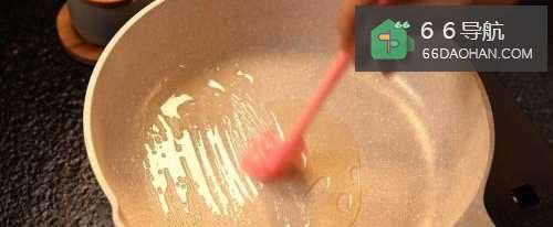 3起锅热油,把调好的糊平铺上去,表面喷点油,先倒在盘子上,把锅倒扣过来翻面,这样就不容易散了,均匀的分成八份,切多了容易吃不完。