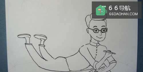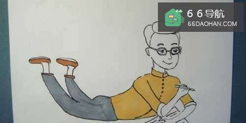 然后,用黑色的勾线笔画爸爸人物图形的腿脚和鞋子部分,如下图所示。
