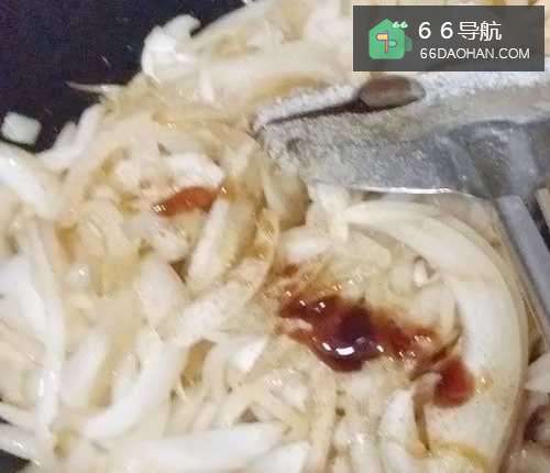 7然后加入适量的酱油和醋,醋一定要放的,为了让洋葱爽脆,一定要早加
