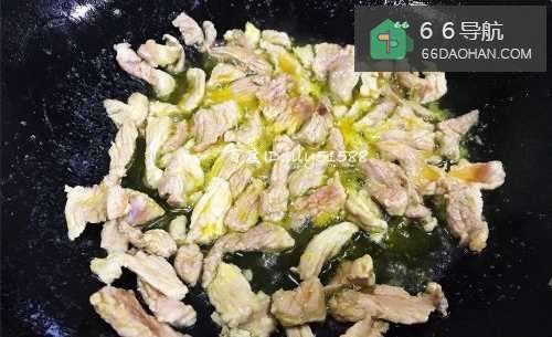 3烧热锅放入油,把瘦肉放进锅里,用大火翻炒2分钟。