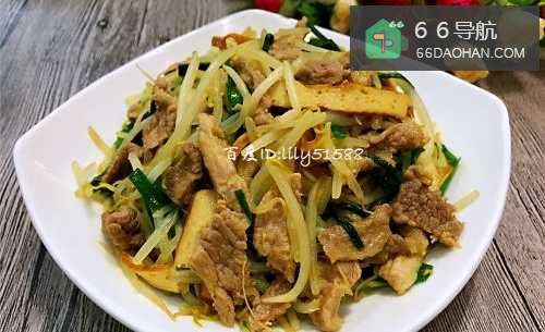 7瘦肉炒豆芽就做好了,装盘。