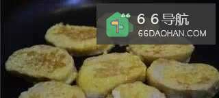 4把面包片放入蛋奶液里两面都充分浸满,在锅里放入适量黄油,加热至融化后摆入面包片,煎至两面呈金黄色