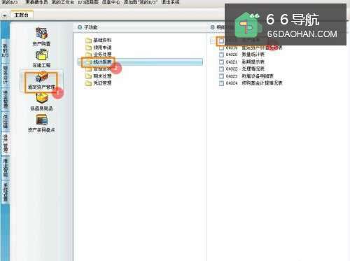 2进入资产管理界面,点击【固定资产管理】→【统计报表】→【资产清单】。