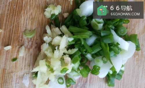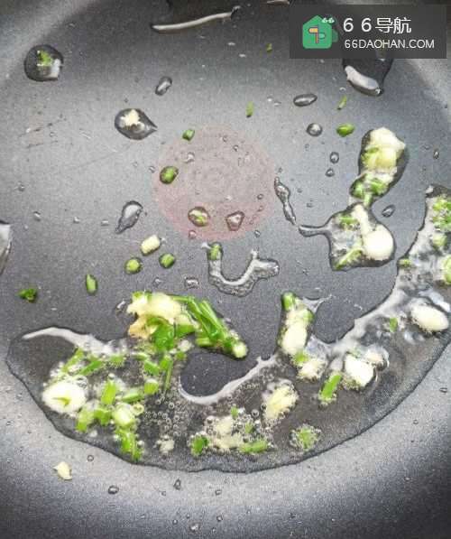 4不粘锅加入少许食用油,放入葱姜末,放入猪肉丁略炒至变色。