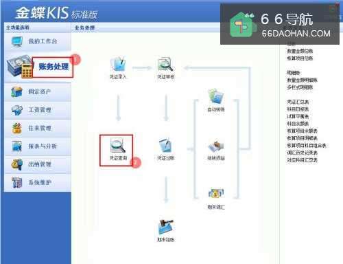 2在功能选项菜单,点击【账务处理】【凭证查询】;