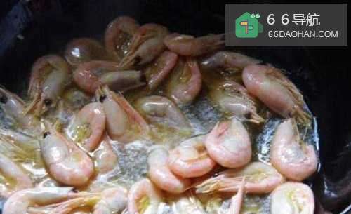 3油锅烧至七成热下入虾炸至金黄,捞出大虾控油