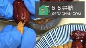 2红枣塞入杏仁,还可以放核桃腰果开心果等等。