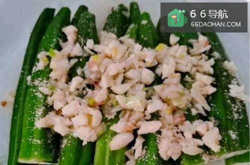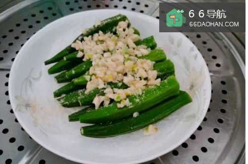 6蒸锅水开,放入秋葵大火蒸5分钟