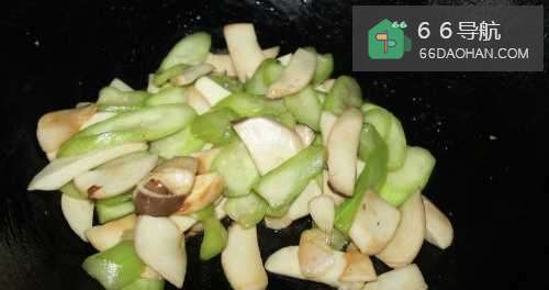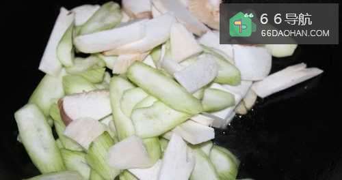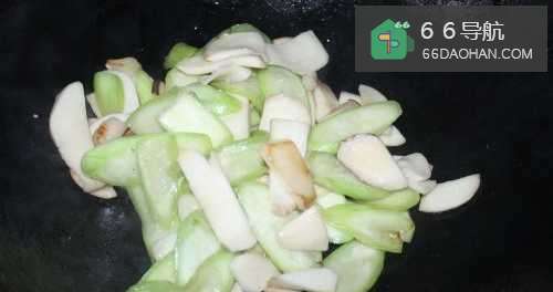 4放入丝瓜和杏鲍菇翻炒。