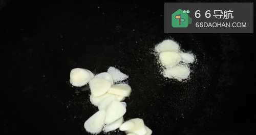 3锅中放油烧热,放入蒜炒香。
