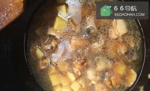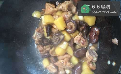 5最关键的来了,放入香菇水,沫过食材即可(别把香菇水里的杂质倒入到锅里,影响口感)