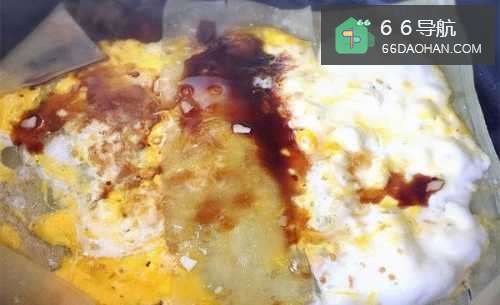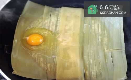 2在已经不再僵硬的面饼上打一只鸡蛋,注意不要让鸡蛋液流淌到面饼范围外去,不然很容易糊锅,糊锅就毁了啊~
