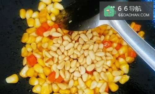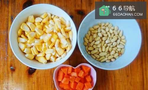 1准备好玉米粒,松子仁和胡萝卜丁。