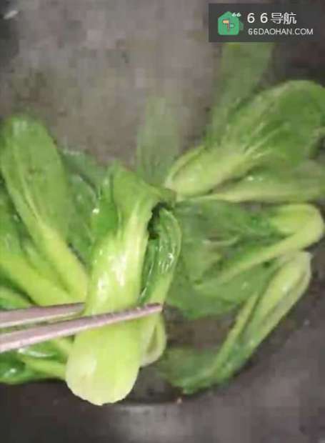 2水开加一点盐和植物油,下油菜焯水,烘干水分,捞出备用。