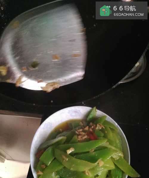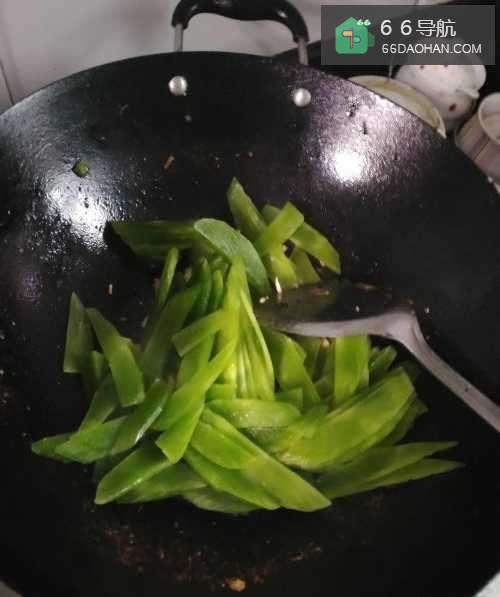 4第四步,等蒜和红辣椒炒香以后倒入切好的莴笋片。