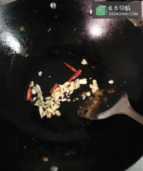 3第三步,在锅里倒入适量花生油,等油七八分熟以后倒入蒜和红辣椒。